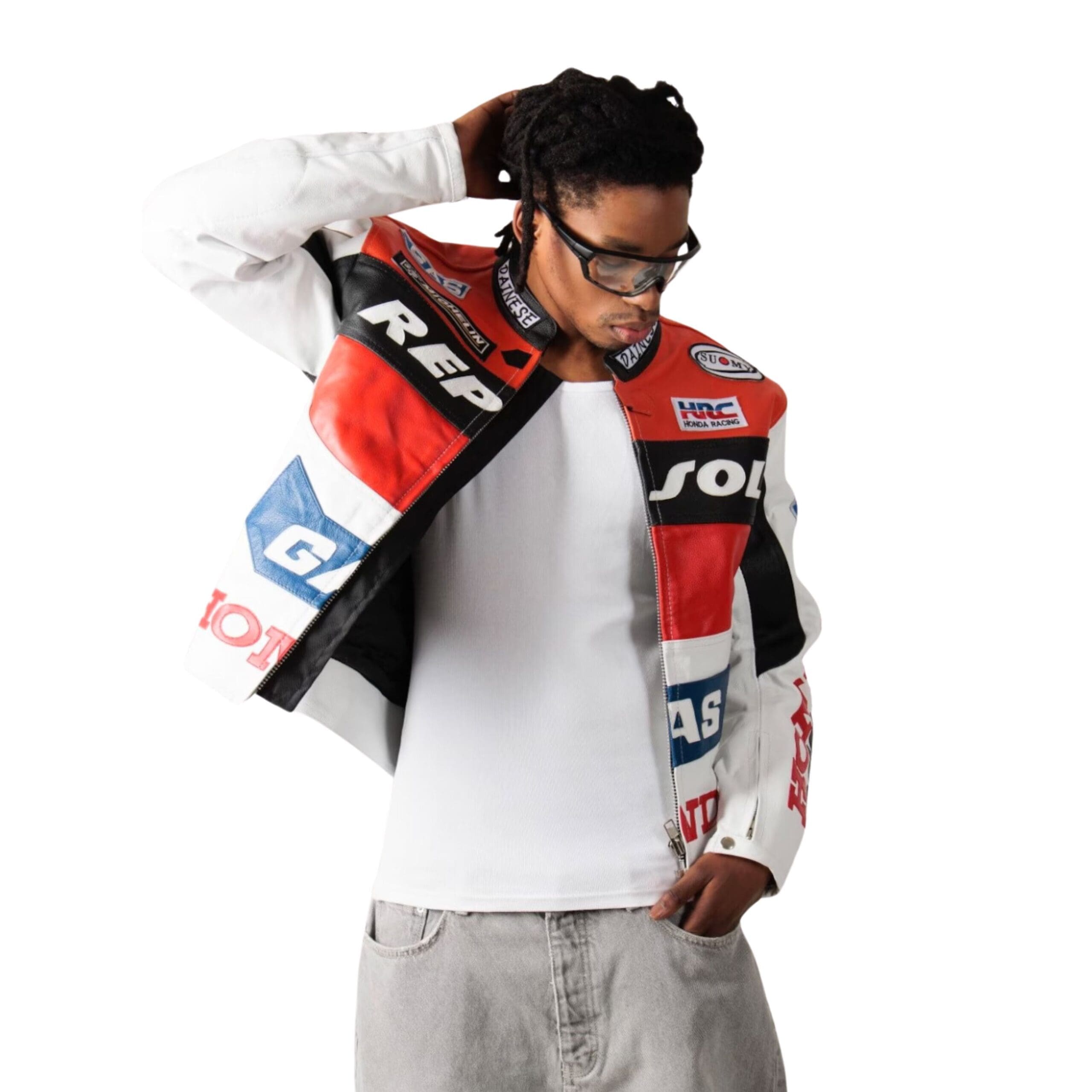 I just got my hands on this Honda racing leather jacket, and it's absolutely awesome! The fit is perfect, and the quality is top-notch. Not only does it look cool, but it also feels super comfy. I feel like a total badass wearing it on my rides. Definitely worth every penny!