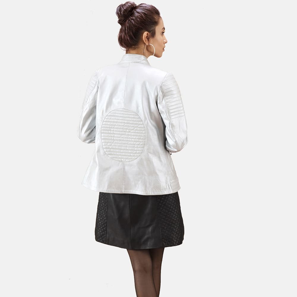 Ice Maiden Silver Quilted Leather Biker Jacket