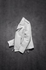 Adjustable side seam zipped cuffs with rollercoaster buckles.