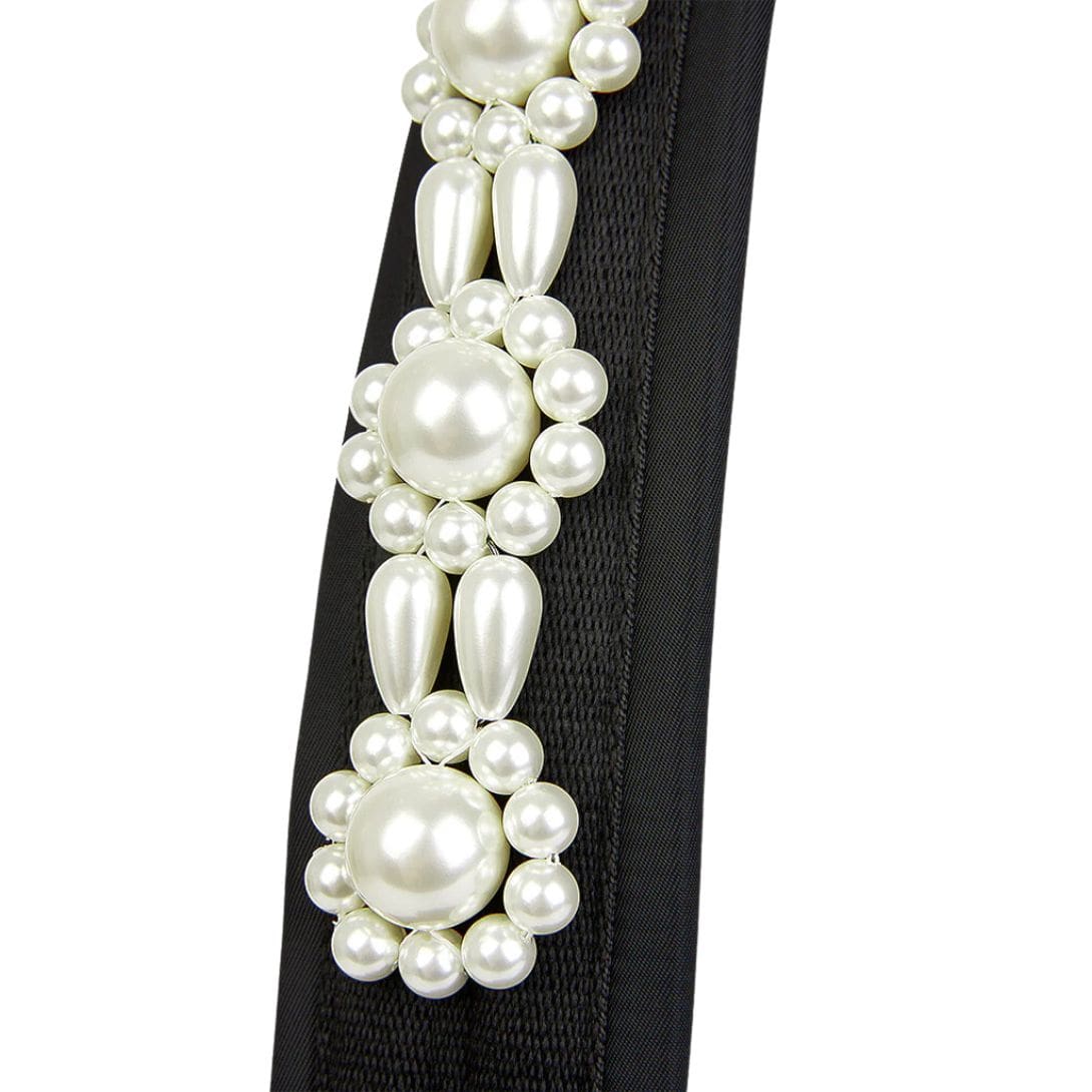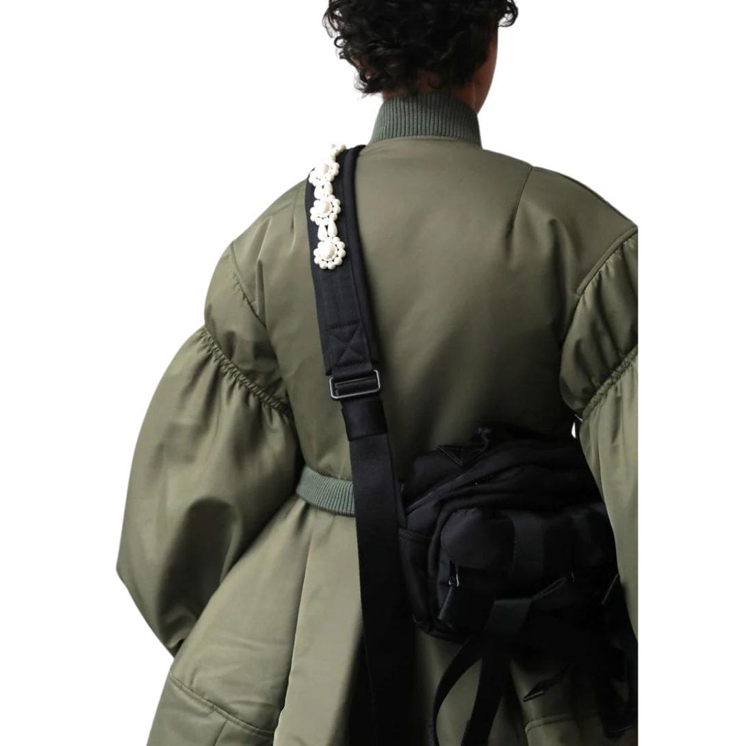 Introducing the black La Garconne Simone Rocha Bow Crossbody Bum Bag adorned with floral beaded embellishment crafted from nylon.