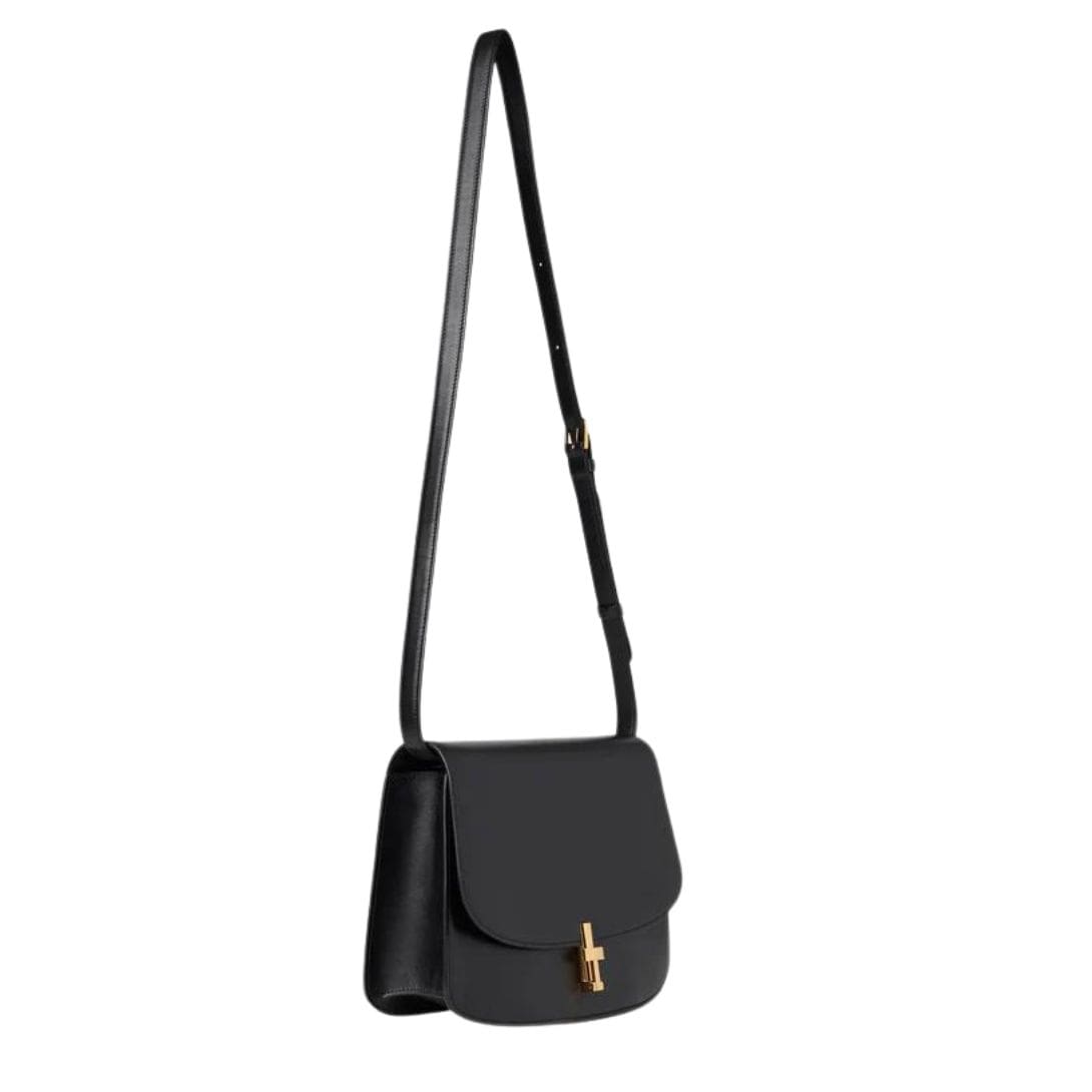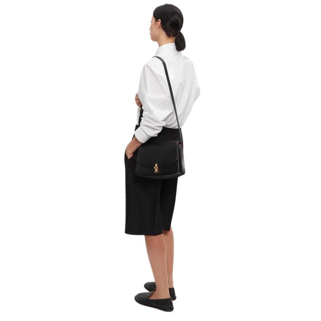 The Row presents its classic structured La Garconne the Row Sofia 10.00 Crossbody handbag, meticulously crafted from sleek calfskin leather. This timeless piece features an adjustable shoulder strap for versatility and a secure lock closure.