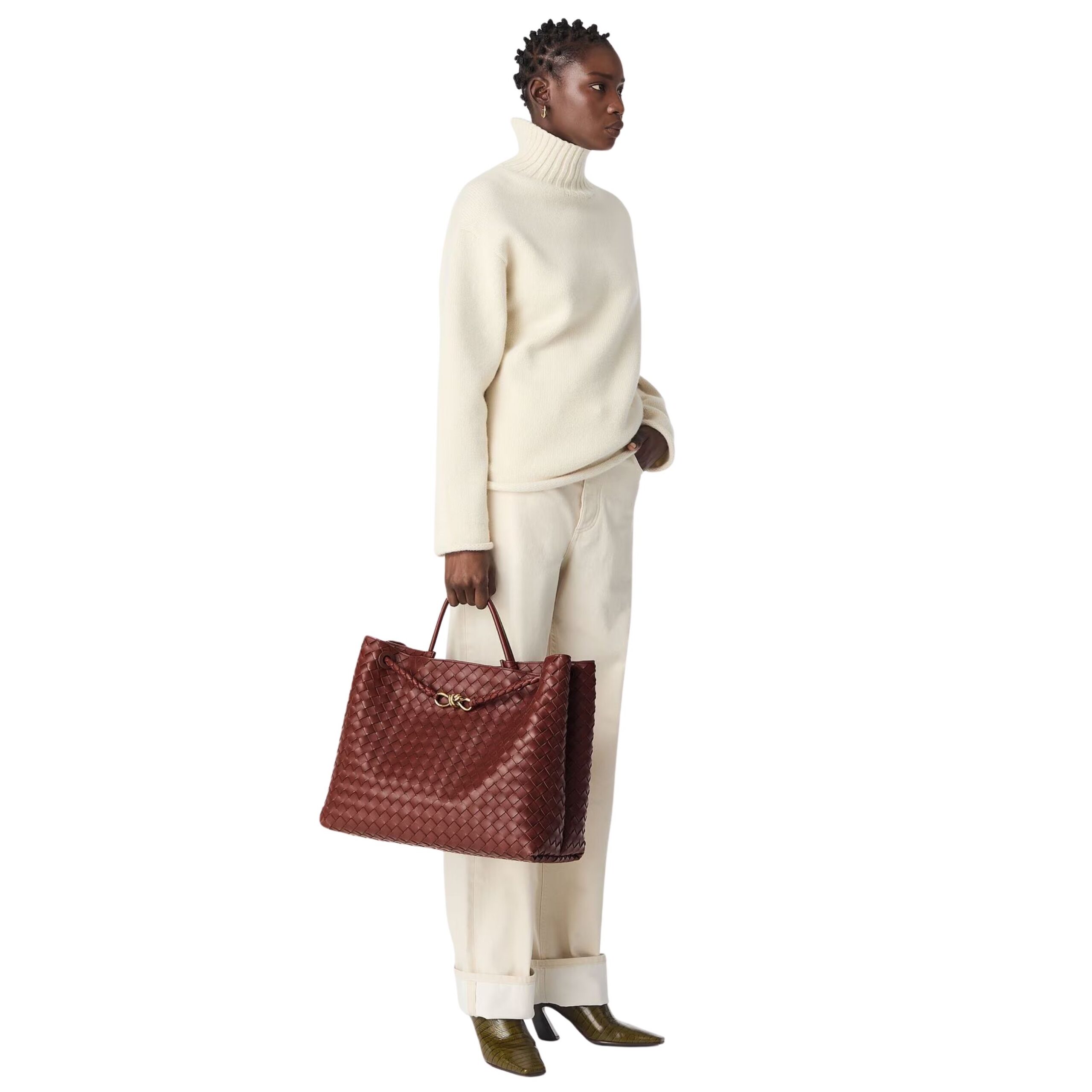 Perfect for the modern professional or fashion-forward traveler, the Large Andiamo Bag transitions seamlessly from the office to evening outings, embodying Bottega Veneta’s philosophy of quiet luxury. Its timeless design ensures it remains a staple piece in your wardrobe for years to come, while the leather ages gracefully, developing a unique patina that enhances its character over time.