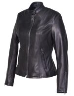 This lightweight naked pebbled cowhide cafe racer is specifically cut to fit a woman’s body.