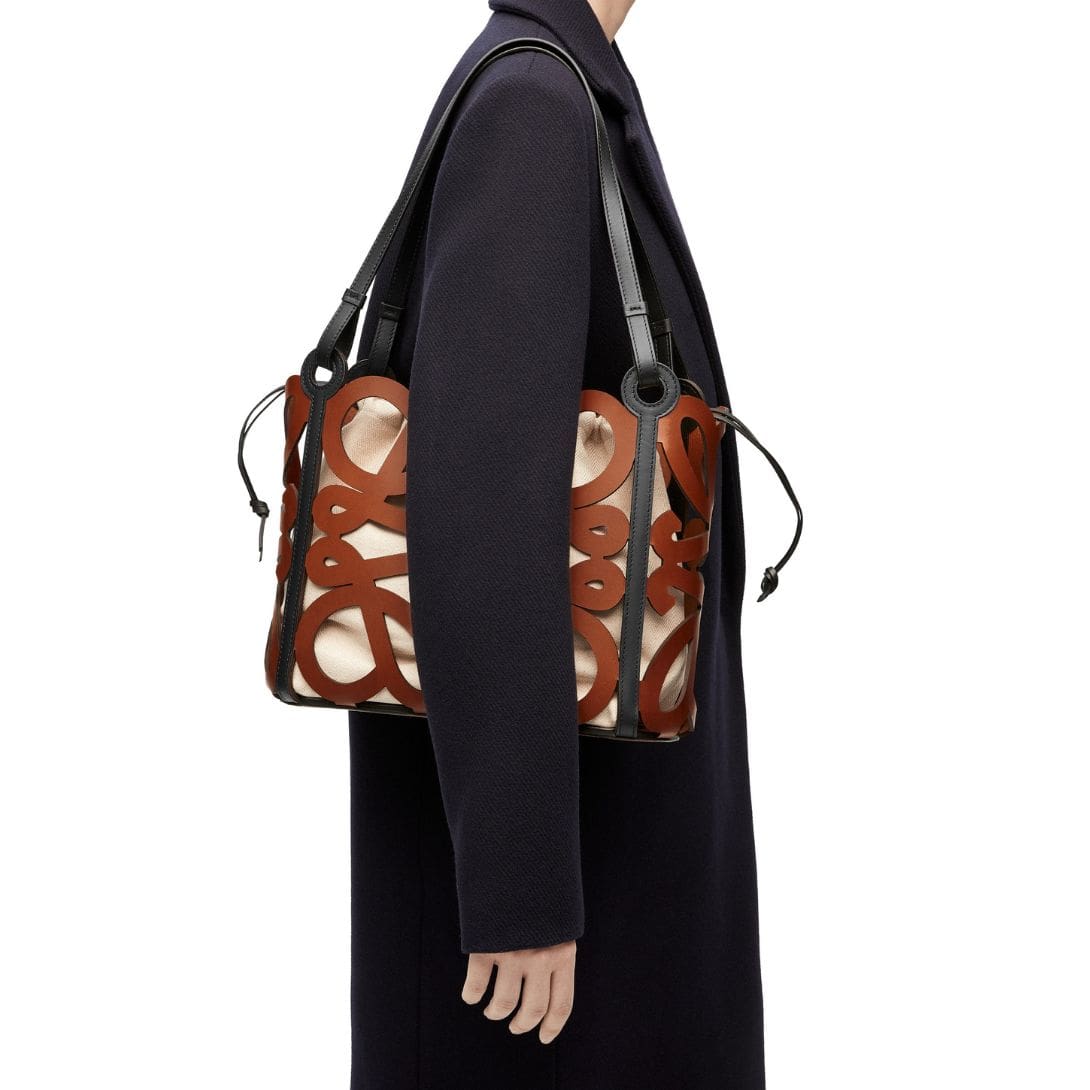 Its timeless design and practical features make it a versatile accessory for the modern individual. Whether paired with casual or formal attire, the LOEWE Anagram Cut Out Tote Bag adds a touch of refinement to any outfit, reflecting LOEWE’s commitment to quality and craftsmanship.