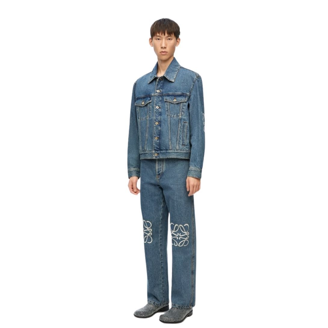 The design of the LOEWE Anagram Jacket in denim is both timeless and modern. The clean lines and minimalist aesthetic are complemented by the subtle presence of the anagram motif. This creates a piece that is both understated and distinctive, making it a versatile addition to any wardrobe. The jacket can be dressed up or down, making it suitable for a range of occasions, from casual outings to more formal events.