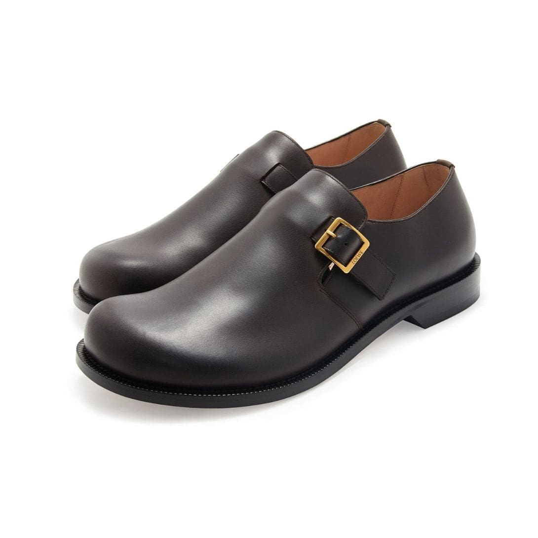 One of the defining features of the Campo Buckle Derby is its distinctive buckle closure. Positioned elegantly on the side, this detail not only serves a functional purpose in adjusting the fit but also adds a unique design element that sets it apart from conventional lace-up shoes. This innovative approach to traditional Derby styling reflects Loewe’s commitment to reinventing classic designs with contemporary twists, appealing to modern fashion connoisseurs seeking both timeless elegance and distinctive flair.
