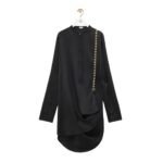 The design of the chain shirt dress showcases Loewe’s modern aesthetic with subtle yet bold chain accents. These accents add a touch of edge and sophistication, elevating the classic shirt dress silhouette. The integration of chains into the silk fabric creates a unique contrast, making a stylish statement without compromising on comfort.