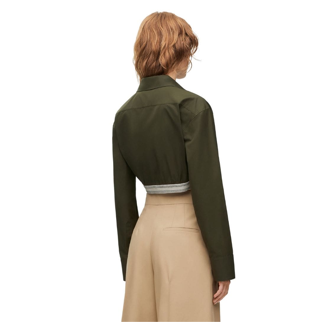 Loewe Cropped Shirt in Cotton is a standout piece in contemporary fashion. Loewe, a brand renowned for its craftsmanship and innovative designs, offers a shirt that seamlessly blends classic tailoring with modern aesthetics. The cropped silhouette of this shirt is a bold departure from traditional styles, emphasizing a chic and fashionable approach that highlights the wearer’s individual style.