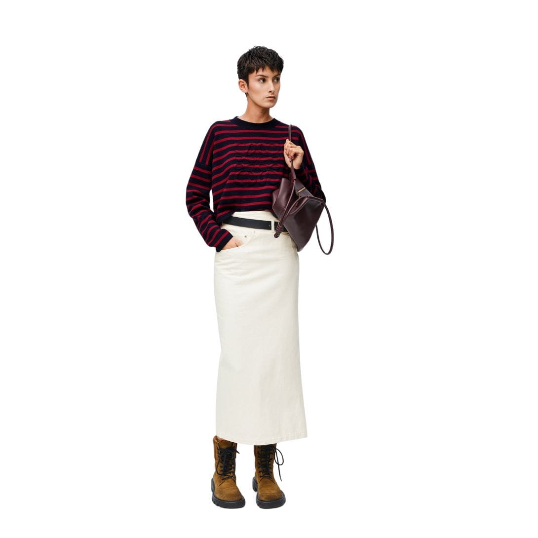 The deconstructed design is the standout feature of these skirts. This approach involves a creative reimagining of traditional denim skirt elements, resulting in a piece that is both unique and eye-catching. Asymmetric hems, exposed seams, and innovative cuts characterize the deconstructed look, giving the skirt an edgy, avant-garde feel. This design choice reflects Loewe’s commitment to pushing the boundaries of conventional fashion and creating pieces that challenge the norm.
