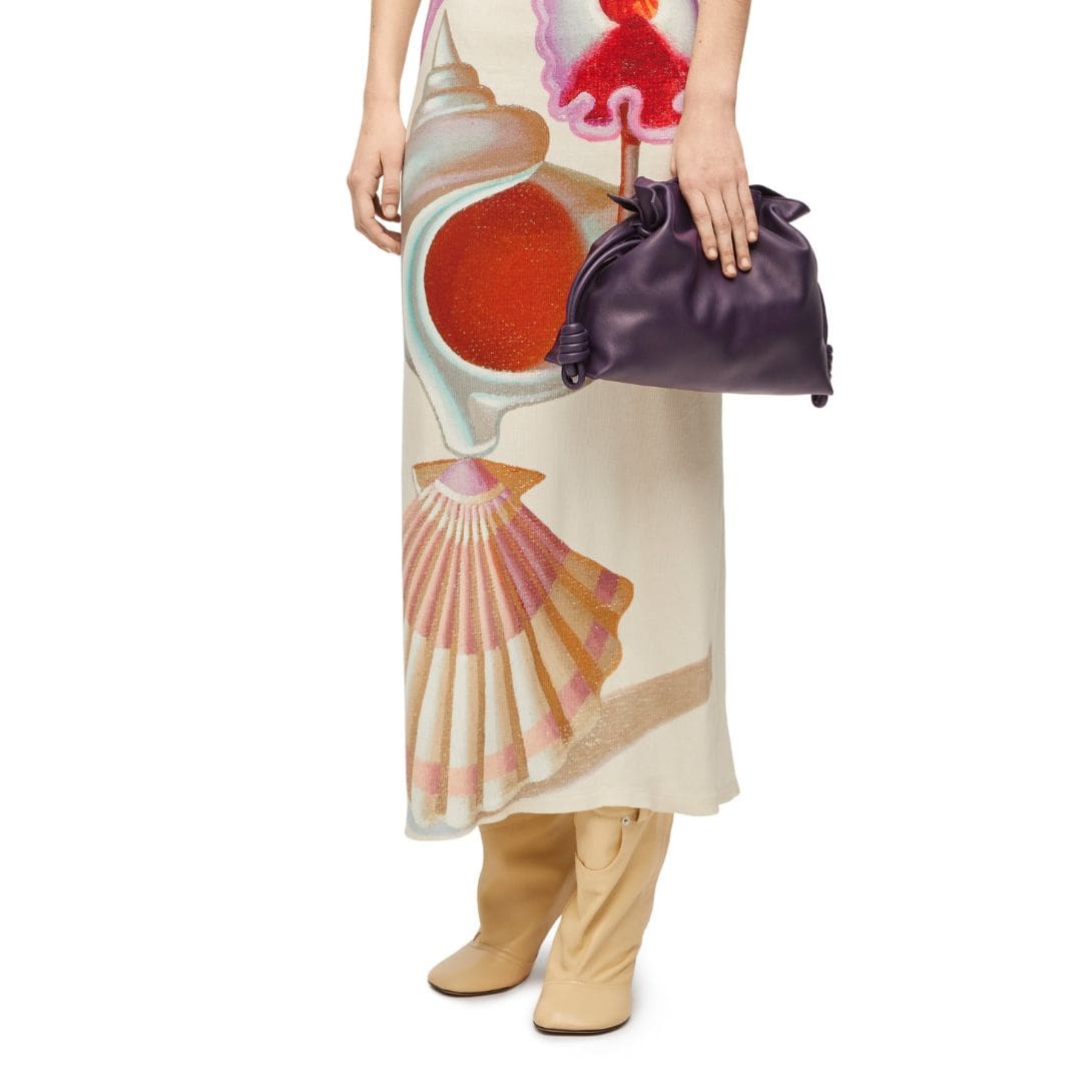 The LOEWE Flamenco Clutch Bag In Calfskin Nappa redefines luxury with its exquisite craftsmanship and premium materials. Crafted from the finest calf nappa leather, it boasts a buttery soft texture that exudes sophistication.