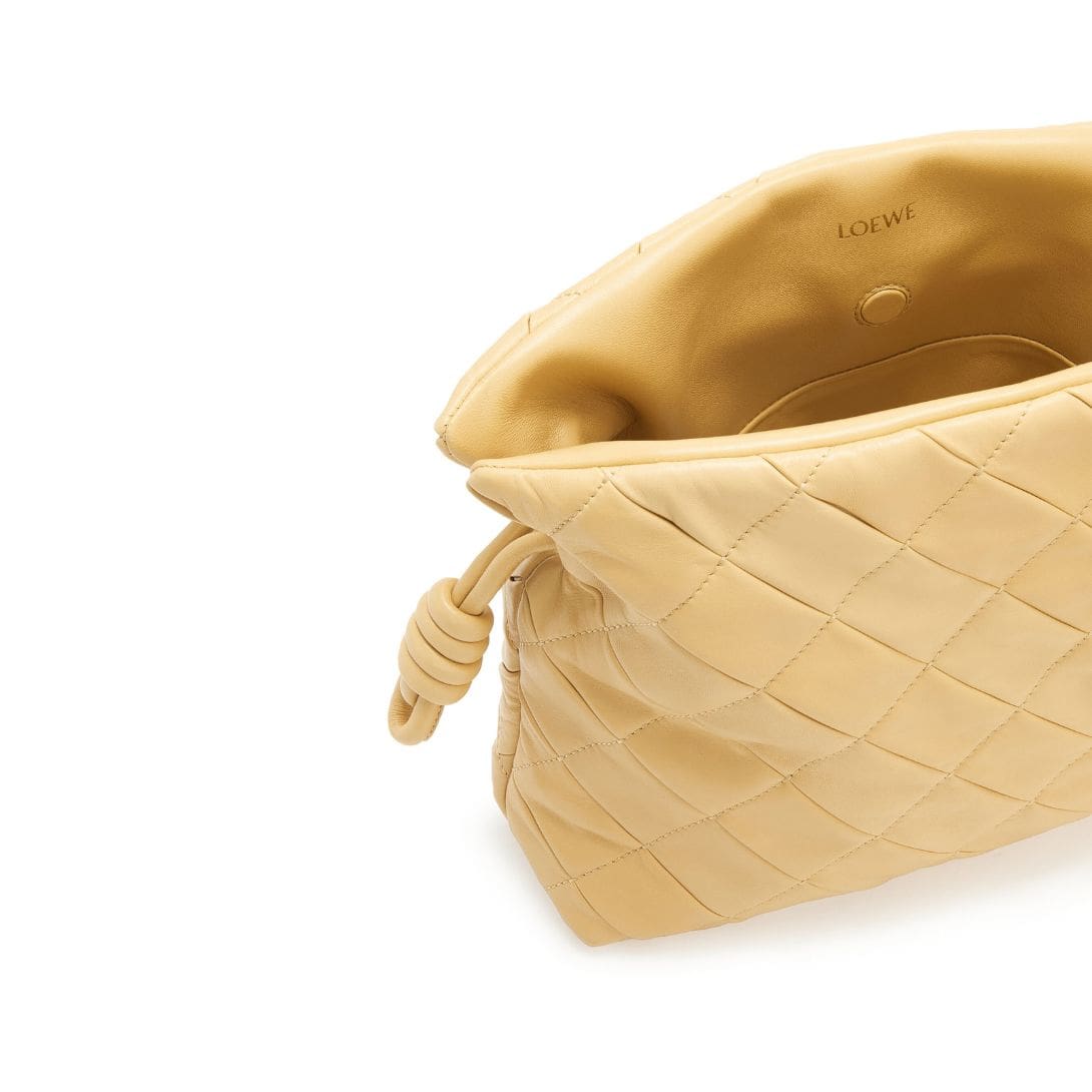 The LOEWE Flamenco Clutch Bag in Pleated Lambskin is a testament to elegance and luxury, meticulously crafted with exquisite attention to detail. Its main material, pleated nappa leather, embodies opulence, offering a soft yet structured texture that exudes sophistication.