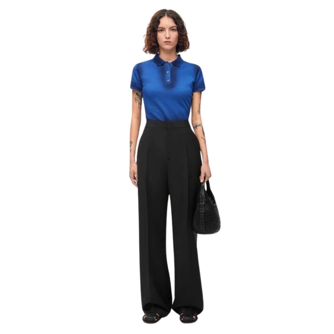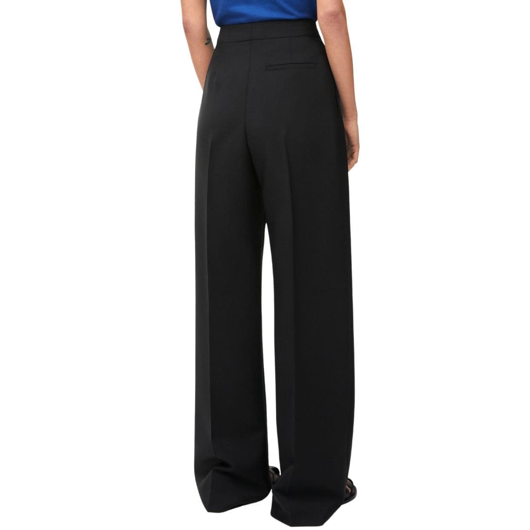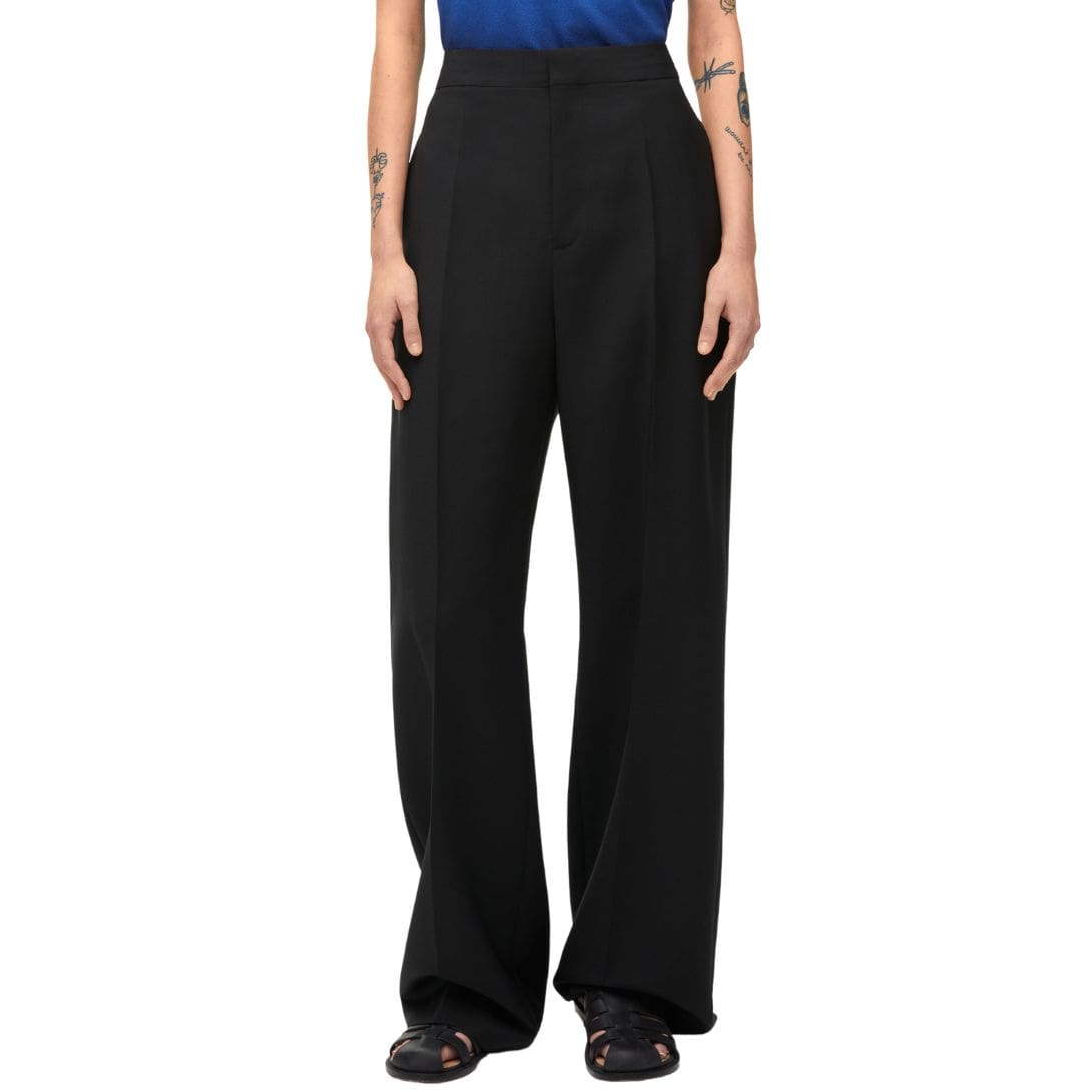 Loewe’s attention to detail is evident in the tailored cut and refined finishing touches of these trousers. The clean lines and sharp pleats contribute to a polished appearance, while the high waistline creates a streamlined effect that pairs beautifully with a variety of tops, from tucked-in blouses to cropped sweaters. Additionally, the trousers feature a classic zip fly and button closure, further enhancing their sophisticated design.