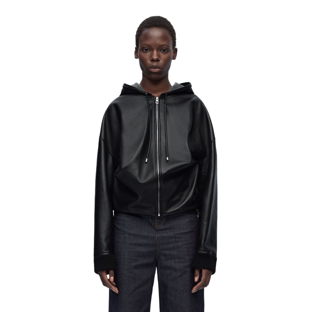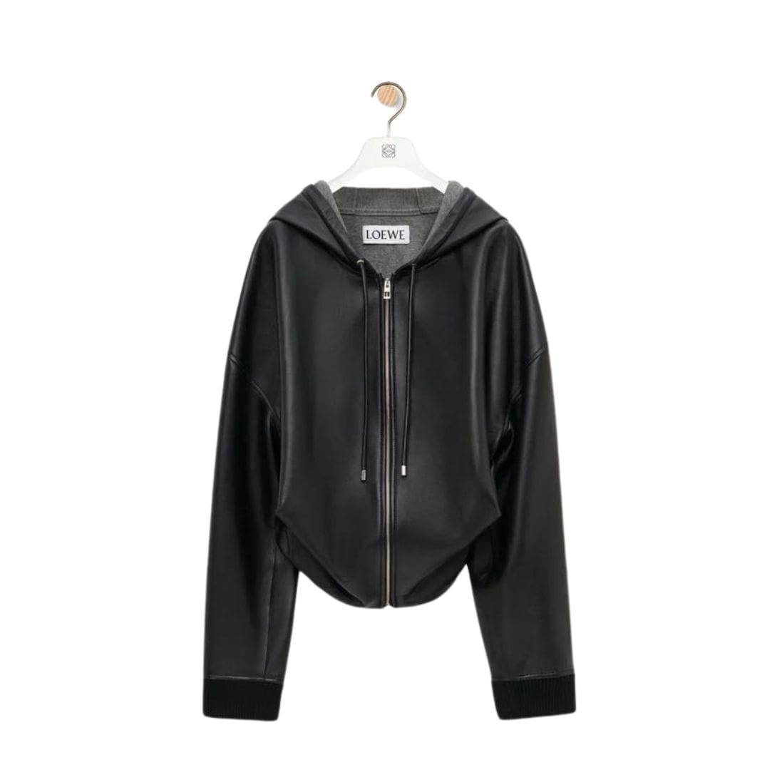 LOEWE HOODED SWEATSHIRT DRAPED IN LAMBSKIN NAPPA