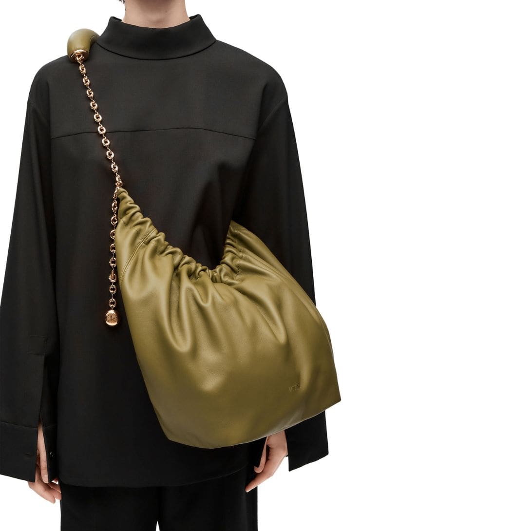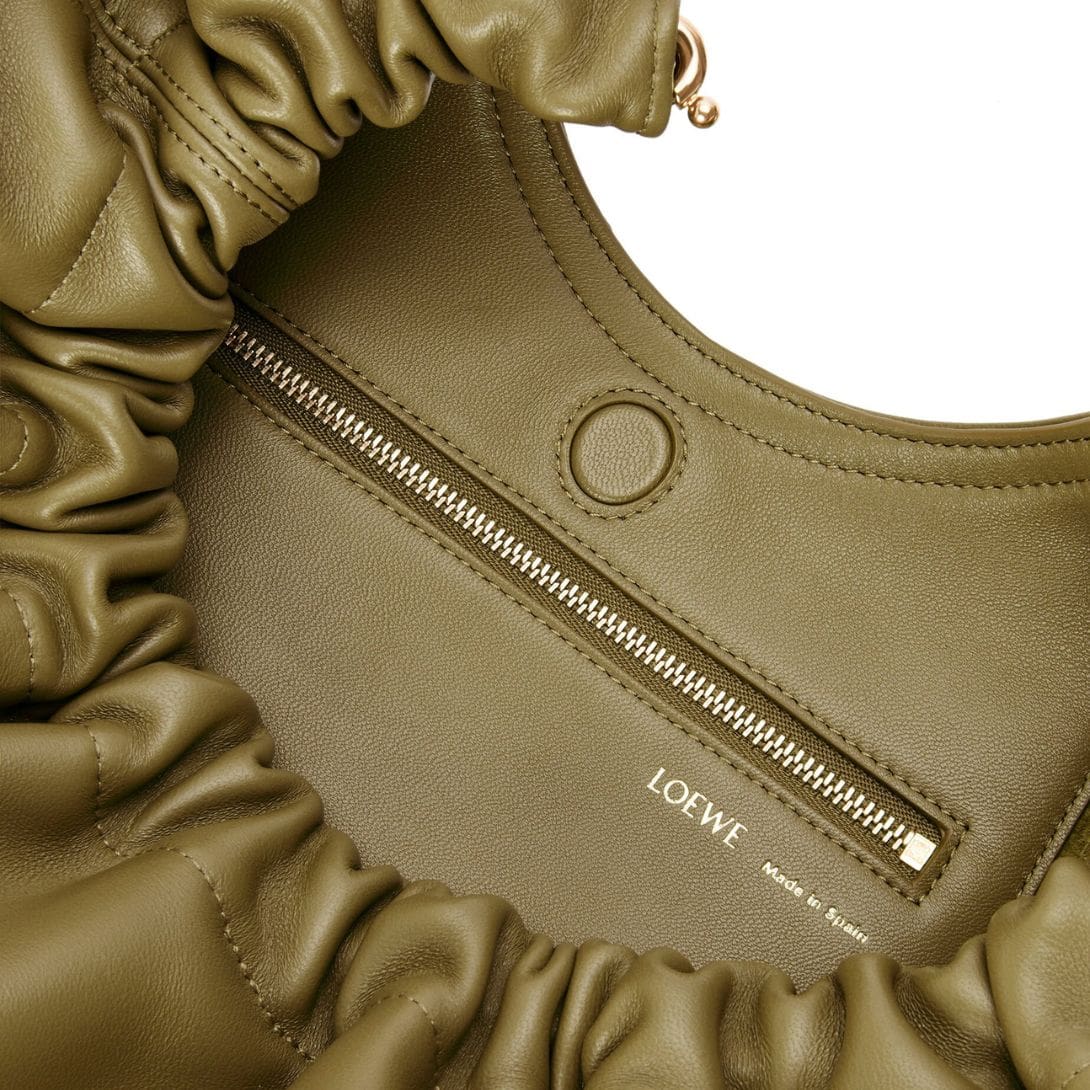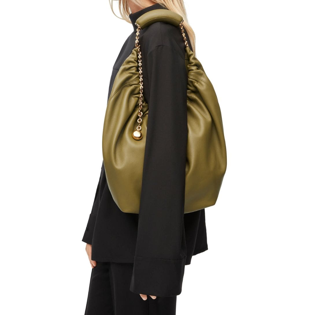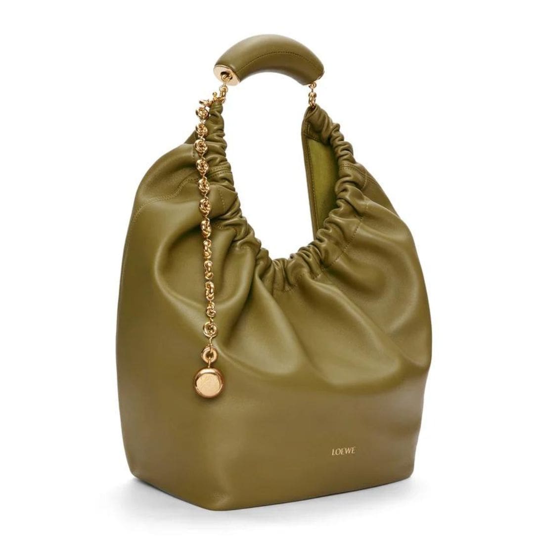 The elegant design of the LOEWE Medium Squeeze Bag is complemented by its practical features. The soft lamb nappa leather ensures durability while giving the bag a refined, polished look. This blend of form and function makes it a versatile accessory that can be paired with both casual and formal outfits.