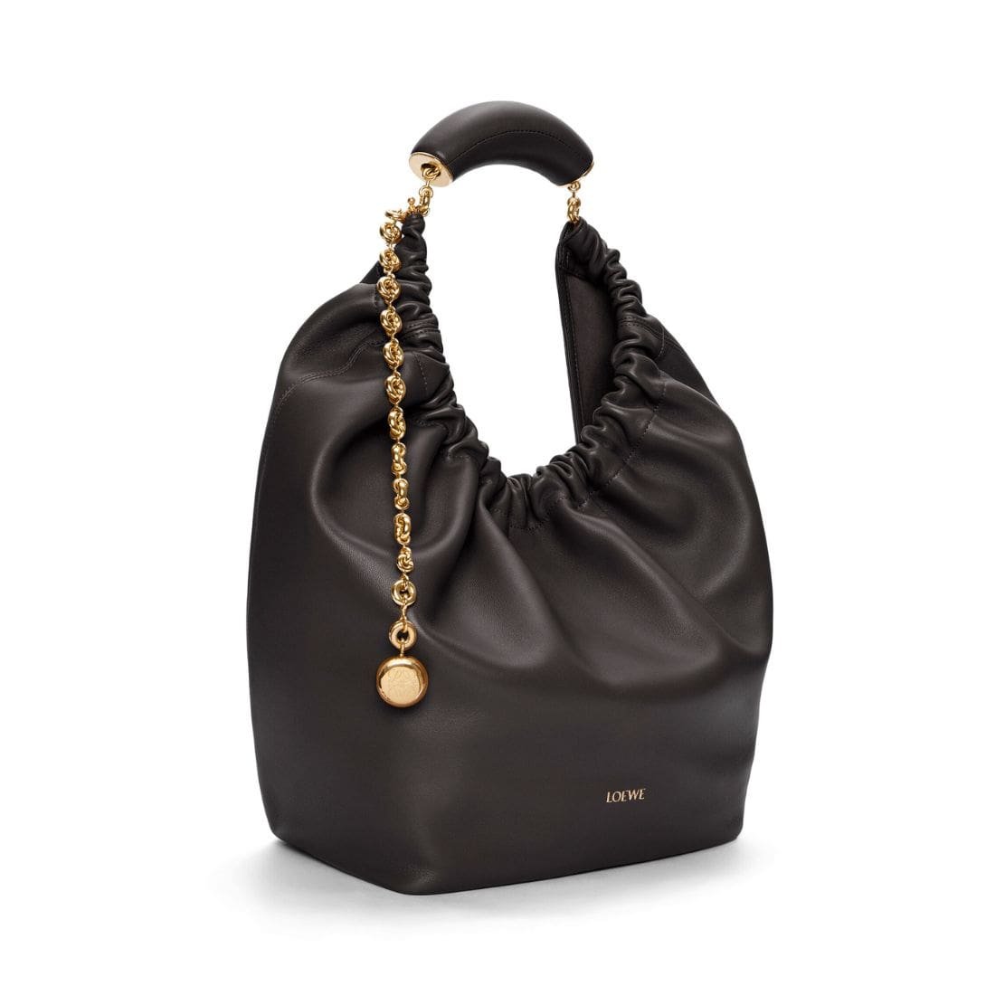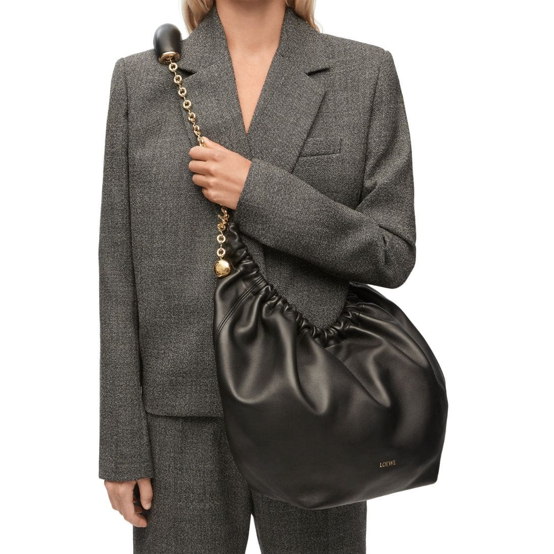 The elegant design of the LOEWE Medium Squeeze Bag is complemented by its practical features. The soft lamb nappa leather ensures durability while giving the bag a refined, polished look. This blend of form and function makes it a versatile accessory that can be paired with both casual and formal outfits.