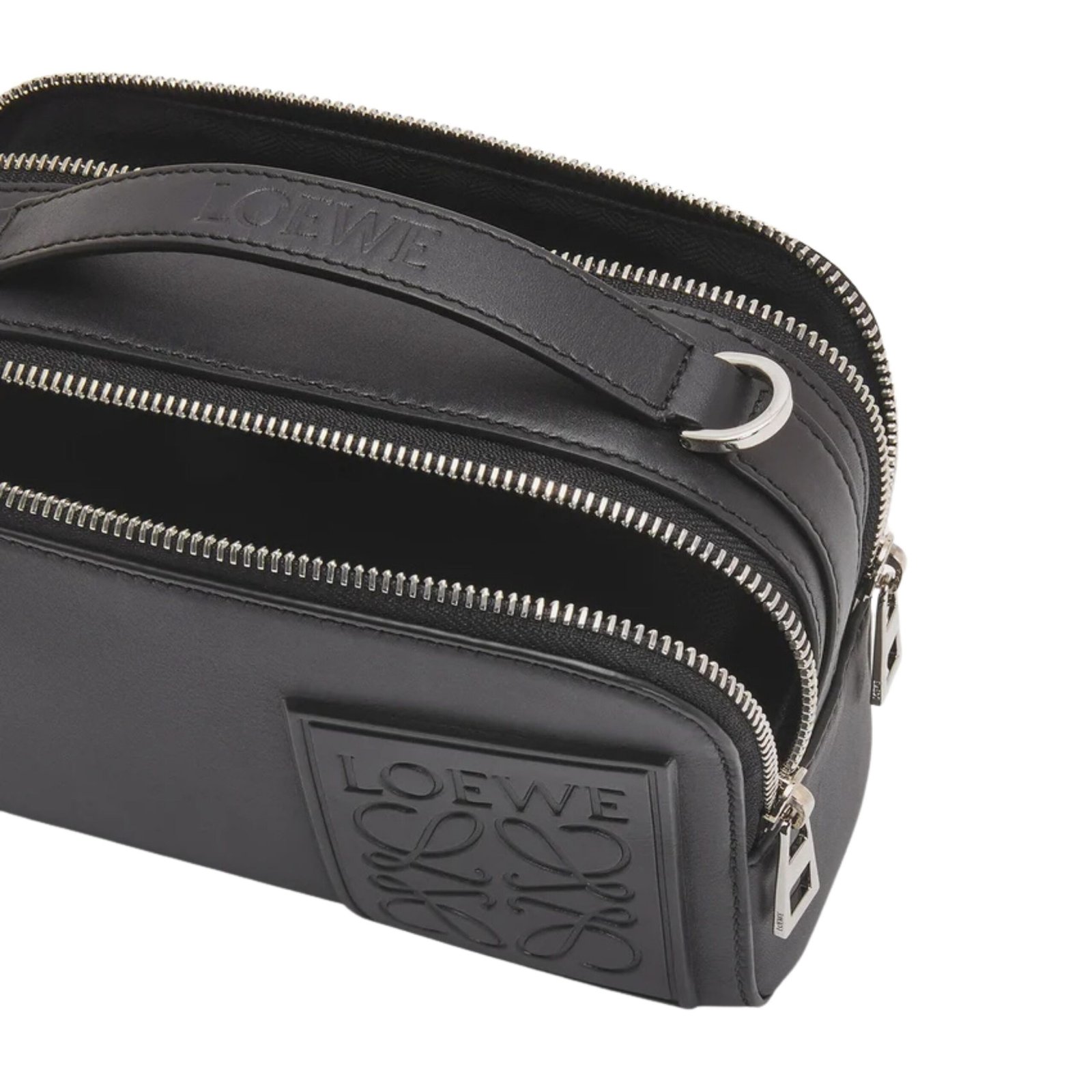 The LOEWE Mini Crossbody Camera Bag is a compact yet stylish accessory that blends functionality with modern design. Crafted for individuals who value convenience without compromising on fashion, this versatile bag is perfect for daily use or travel. Despite its compact size, it offers smart organization with a structured main compartment designed to hold essentials like your phone, keys, wallet, and even a small camera or makeup items. The bag features a zippered closure to keep your belongings secure, while interior slip pockets provide added organization.