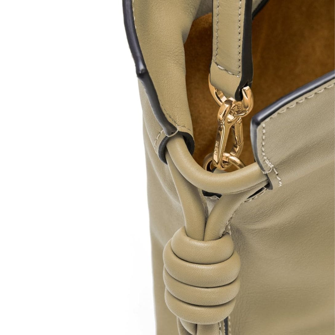 In addition to its practical design, the Mini Flamenco Clutch Bag features LOEWE’s signature knot detailing, adding a touch of uniqueness and flair to the overall aesthetic. This subtle yet distinctive element sets the bag apart, highlighting the brand’s commitment to craftsmanship and innovative design.