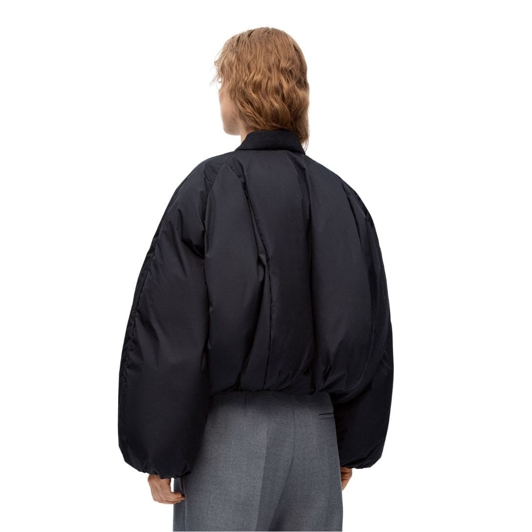 Craftsmanship is evident in the details of the LOEWE Padded Nylon Bomber Jacket. The polyester material is carefully chosen for its quality and performance characteristics. The jacket is meticulously stitched and finished to ensure durability and a refined appearance, reflecting LOEWE’s commitment to superior craftsmanship.