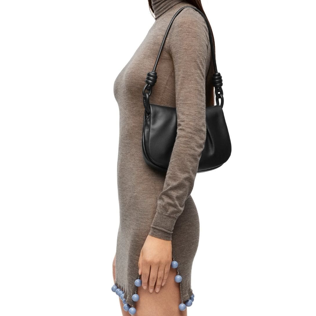 The LOEWE Paseo Satchel Bag combines elegance with practicality. It features an adjustable shoulder strap, ranging from 101 to 110 cm, allowing for versatile carrying options, whether worn crossbody or over the shoulder. Additionally, the sturdy handle with a 27 cm drop offers a comfortable alternative for handheld carry, enhancing its versatility.