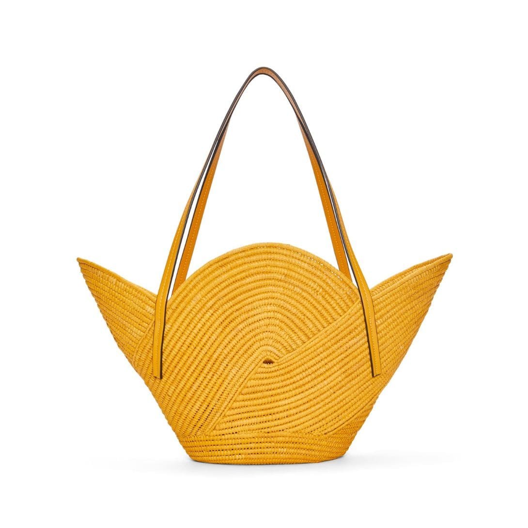 LOEWE PETAL BASKET BAG IN RAFFIA AND CALFSKIN