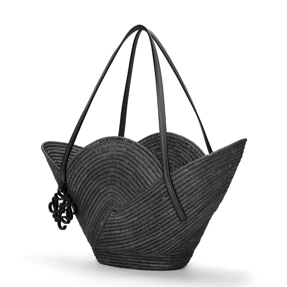 LOEWE PETAL BASKET BAG IN RAFFIA AND CALFSKIN