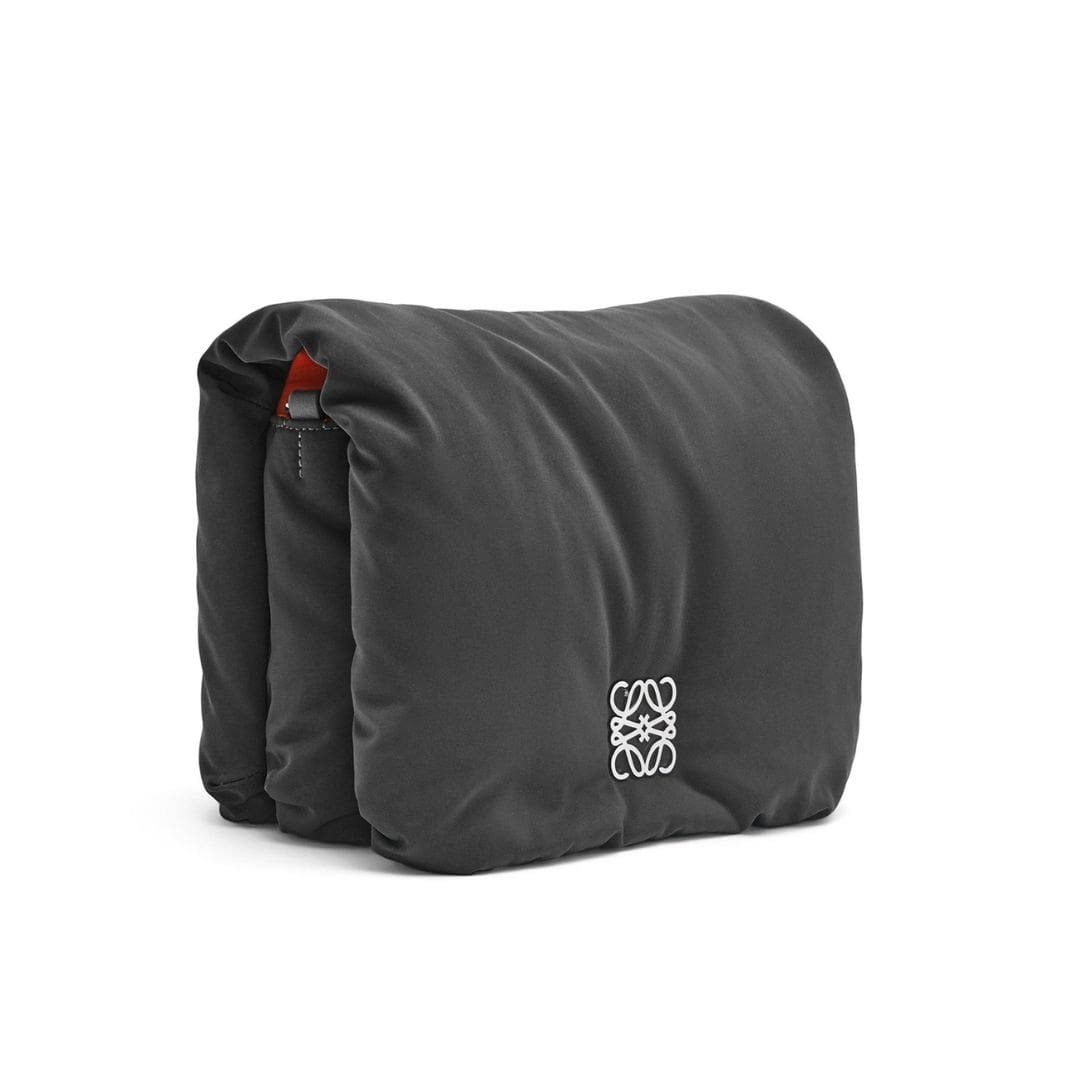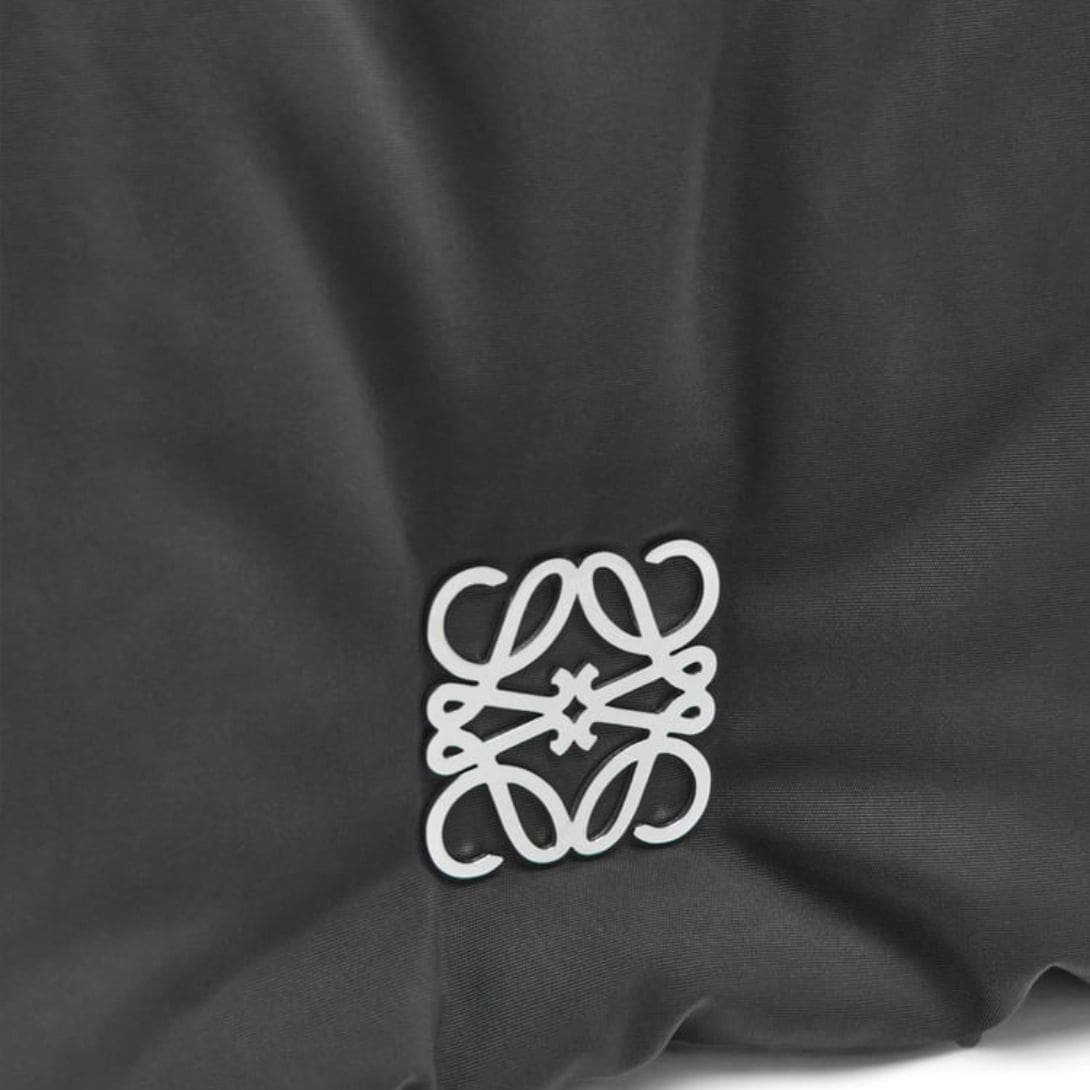 Introducing the LOEWE Puffer Goya Bag In Nylon, an exquisite blend of contemporary style and practical functionality. Crafted in sleek black nylon, this bag exudes modern sophistication, making it a versatile addition to any wardrobe. The palladium metallic accents provide a striking contrast to the black nylon, adding a touch of understated luxury to the design.