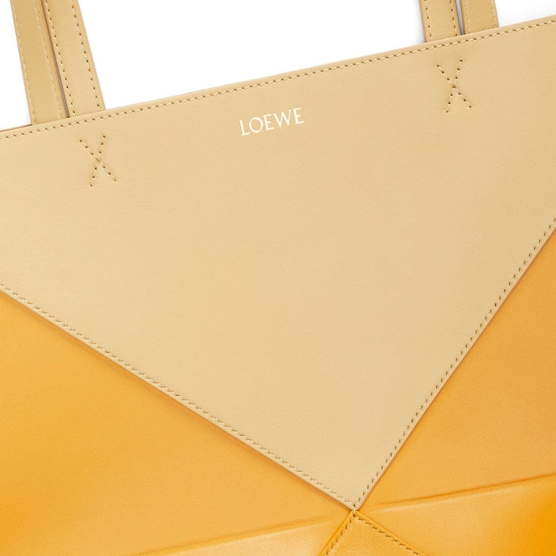 Indulge in luxury with the exquisite craftsmanship of the LOEWE Puzzle Fold Tote Bag In Shiny Calfskin, crafted from polished calf leather. This sophisticated accessory is both timeless and versatile, embodying the epitome of elegance.