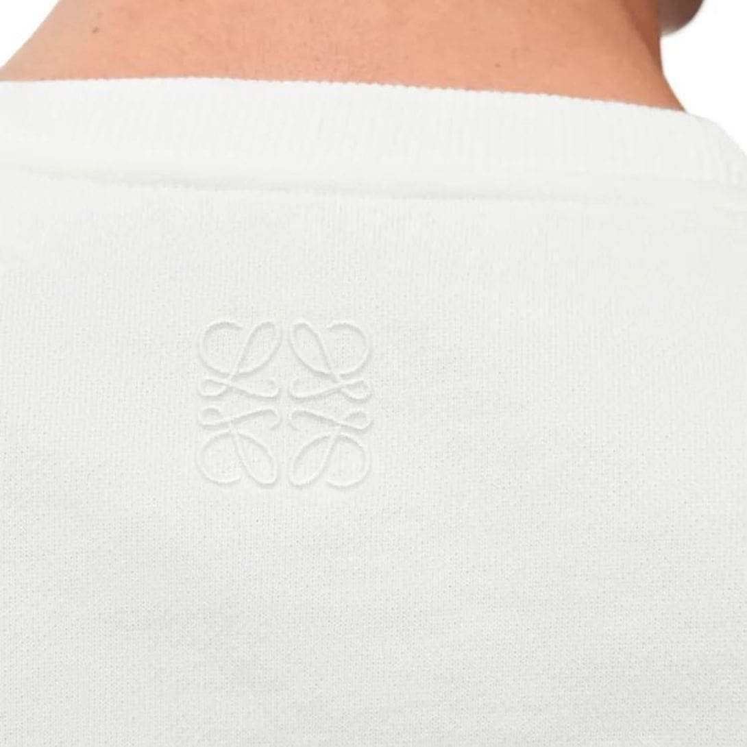 The sweatshirt also features the Loewe logo subtly embroidered or printed, reflecting the brand’s heritage of quality and craftsmanship without overwhelming the design. This discrete branding aligns with the modern trend of understated luxury, where the focus is on superior materials and construction rather than overt logos.