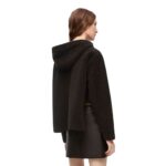 The design of the Shearling Hooded Jacket combines sophistication with practicality. Its tailored fit and structured silhouette offer a flattering look, while the hood adds a contemporary touch to its classic design. This blend of style and functionality makes the jacket versatile, suitable for various occasions from casual outings to more formal events.