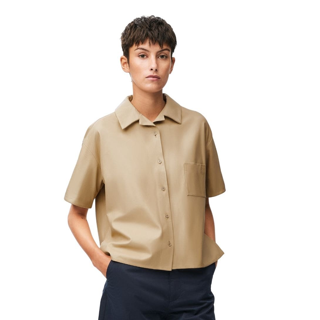 The design of the LOEWE Short Sleeve in Nappa Lambskin is both timeless and versatile. Its minimalist silhouette and classic cut make it suitable for a range of occasions, from casual outings to more formal events. The clean lines and elegant drape of the Nappa lambskin add a touch of sophistication to any outfit. Whether paired with jeans for a relaxed look or worn with tailored trousers for added refinement, this top effortlessly elevates any ensemble. The neutral color palette ensures that this piece can be easily integrated into any wardrobe, offering endless styling possibilities.