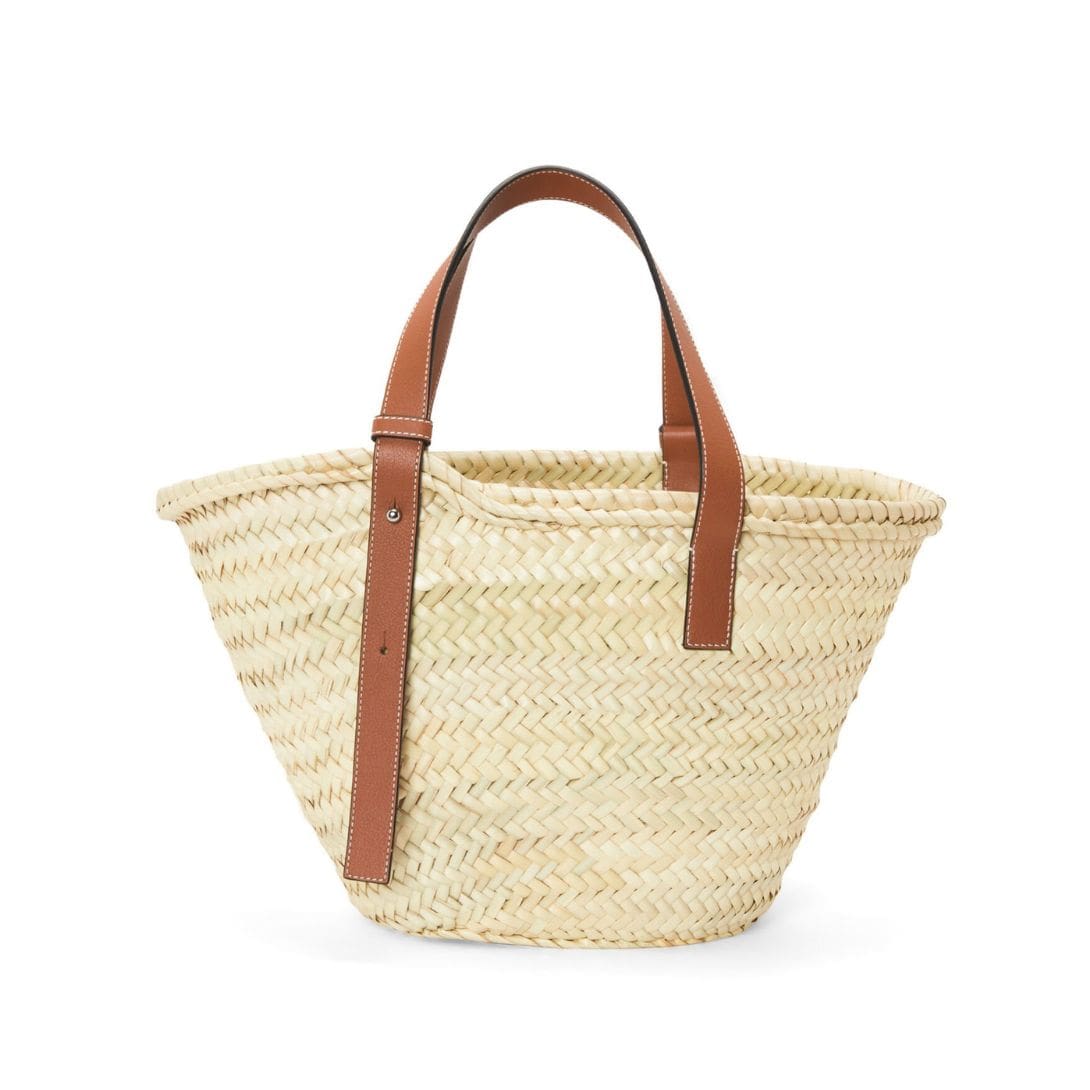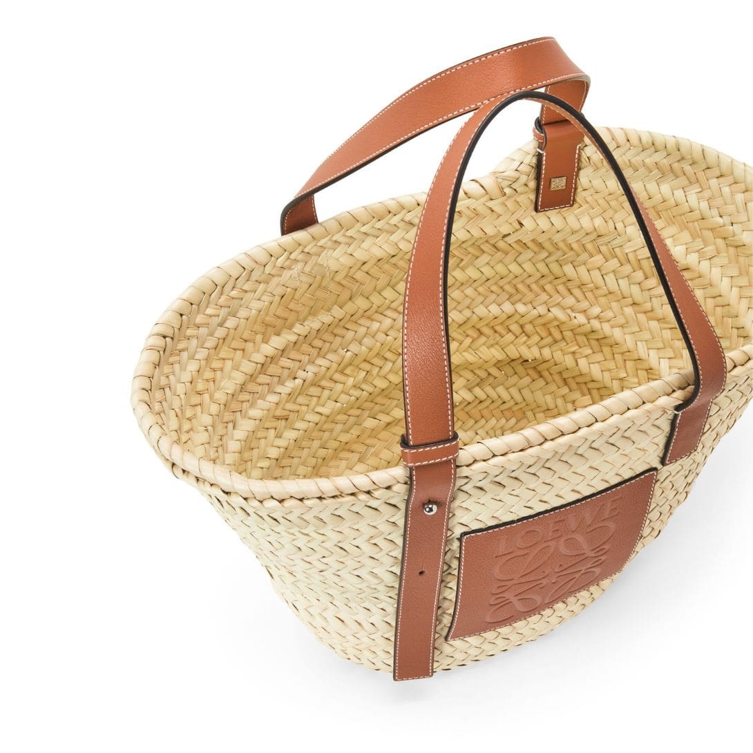 LOEWE BASKET BAG IN PALM LEAF AND CALFSKIN