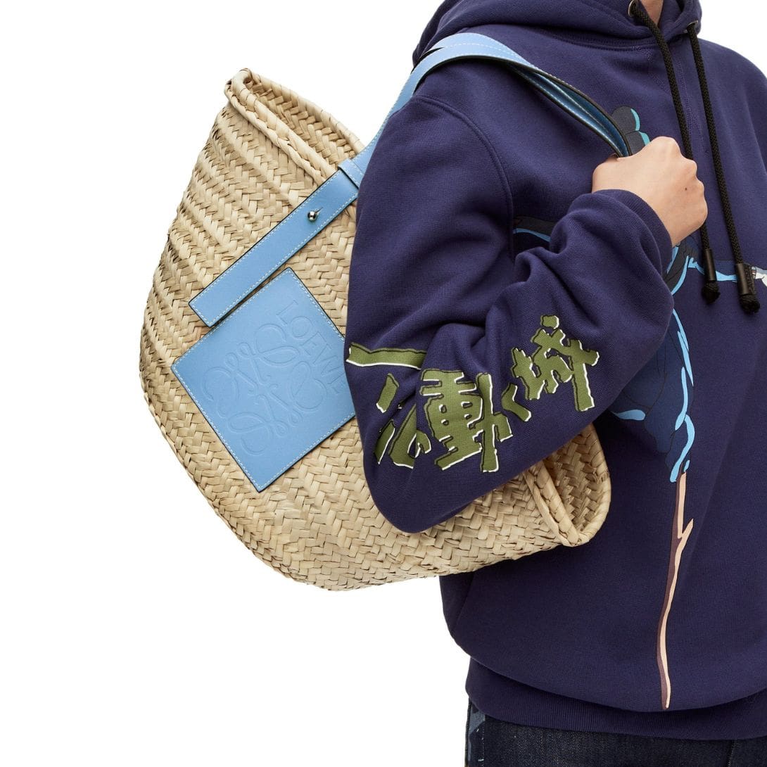 LOEWE BASKET BAG IN PALM LEAF AND CALFSKIN