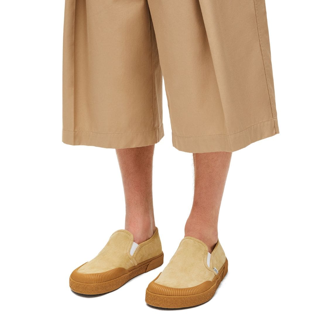 The design ethos of these sneakers leans towards versatility, making them suitable for various style expressions. Whether paired with tailored trousers for a smart-casual look or complementing relaxed denim for a laid-back vibe, they effortlessly elevate any outfit. The slip-on style enhances convenience without compromising on refinement, featuring elasticated inserts or refined detailing that facilitate easy wearability. LOEWE TERRA VULCA SLIP ON SNEA