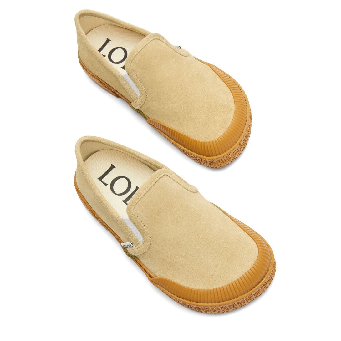 Overall, the LOEWE Terra Vulca Slip On Sneakers embody a synthesis of luxury and practicality, designed for individuals who appreciate refined aesthetics without compromising on comfort or conscientiousness. Their timeless appeal and versatile nature make them a worthy addition to any discerning wardrobe, offering a blend of craftsmanship, style, and sustainability that defines modern luxury footwear. LOEWE TERRA VULCA SLIP ON SNEA