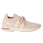 The white rubber sole is designed for lightness and durability, featuring kummel-colored inserts and a tread with the Loro Piana initials. This ultra-light technical sole enhances mobility, making the sneakers perfect for all-day wear.