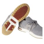 The white rubber sole is designed for lightness and durability, featuring kummel-colored inserts and a tread with the Loro Piana initials. This ultra-light technical sole enhances mobility, making the sneakers perfect for all-day wear.