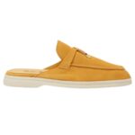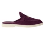 These premium Loro Piana Babouche Charms Walk Loafer Sorbet Pink showcase intricate hand-stitching on the front upper, reflecting expert craftsmanship and attention to detail. This artisanal touch enhances the design, making the shoes both stylish and unique.