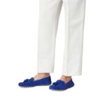 Crafted from 100% suede, these Loro Piana Dot Sole Walk Loafer Blue Fluorite offer a velvety-soft texture and a refined, sophisticated look. Designed with meticulous attention to detail, they exemplify Italian craftsmanship at its finest.