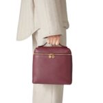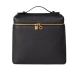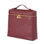 This elegant Loro Piana Extra Pocket Backpack L23.5 Azuki Beans features a leather handle and back shoulder straps, offering versatility for both handheld and backpack-style carrying.