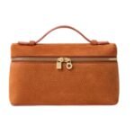 The two-way zip fastening, adorned with Loro Piana charms, adds a distinctive touch of elegance. Complemented by Sun Gold-finished hardware, these refined details enhance the bag’s sophisticated aesthetic.