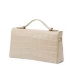 A sophisticated and compact Loro Piana Extra Pocket L19 Light Travertine crafted from luxurious alligator leather, designed to blend elegance with functionality.