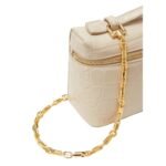 - Sun Gold-finished hardware, including zip, charms, and metal components, adding a luminous accent.