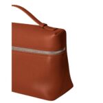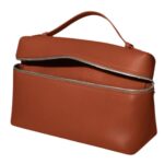 This sophisticated Loro Piana Extra Pocket L27 Kummel features a leather handle for a comfortable grip, complemented by a double-slider zipped closure adorned with My Charms, adding a refined and stylish touch.