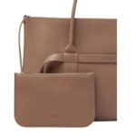 This elegant Loro Piana Large Ghiera Shopper Fossil features structured leather handles with a 16 cm (6.3 in) handle drop, offering a comfortable and versatile carry.