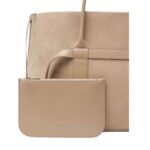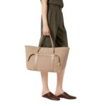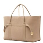 This beautifully crafted Loro Piana Large Ghiera Shopper Fume Taupe features structured leather handles with a 16 cm (6.3 in) handle drop, providing both comfort and versatility for handheld or arm carry.
