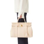This structured leather Loro Piana Loom Bag L32 Creamed Honey features sturdy leather handles with a 10 cm (3.9 in) handle length, offering a comfortable grip for effortless carrying.