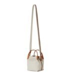This Micro-sized bag features a detachable cotton-and-leather shoulder strap that wraps around the bag, creating a ring-like motif. The adjustable strap with two holes allows for multiple carrying styles—by hand, over the shoulder, or as a crossbody.