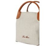 Expertly made in Italy, the bag is crafted from a refined blend of 58% cotton and 42% linen, offering a soft yet structured texture. The outside base is lined in leather, enhancing durability and maintaining its elegant shape.