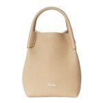 A contrasting-colored, embossed Loro Piana logo is elegantly displayed on the front, adding a subtle yet distinctive branding element. The outside base is lined in leather, enhancing durability and structure.