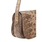 • Metal ring clasp with logo in Sun Gold colorway, adorned with Dalmatian Tejus trim, adding an exotic touch.